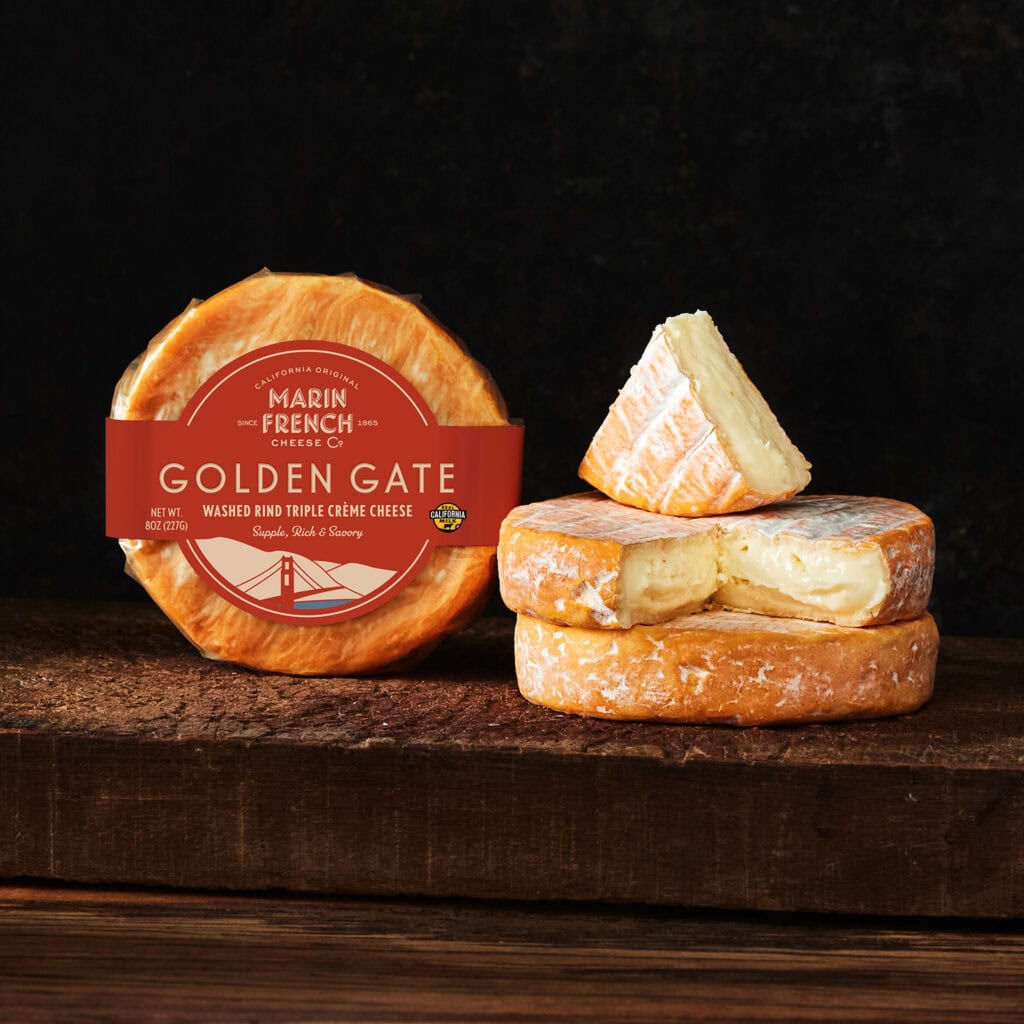 Golden Gate—appropriately named for the architectural icon—is a California original brought to life by the cultures on its dynamic surface. The cheese’s golden hue is less peaceful-sunset-over-the-bridge and more neon-rave-beneath-it. During its 14-day aging cycle, the hedonistic triple cream is hand-washed with brine for a streak of wildness. Gooey, funky, and vegetal, this attention-grabbing bloomy rind placed Third in its category at the 2025 ACS. PV