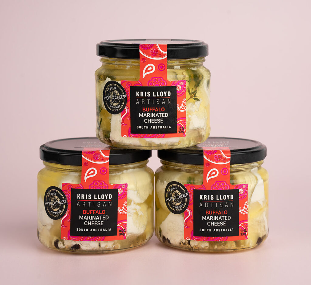 Kris Lloyd Artisan, known for pushing boundaries—ant-coated chèvre, anyone?—delivers another standout with marinated buffalo feta. Made with rich, high-fat buffalo milk, this cheese is velvety and creamy, rivaling traditional sheep’s or goat’s milk counterparts. After a two-week aging period, it’s hand-cut and submerged in olive oil from Coriole Vineyards with fresh thyme and peppercorns, infusing each bite with herbal brightness and savory depth. This marinated cheese has earned widespread acclaim, including Gold at the 2024 WCA.