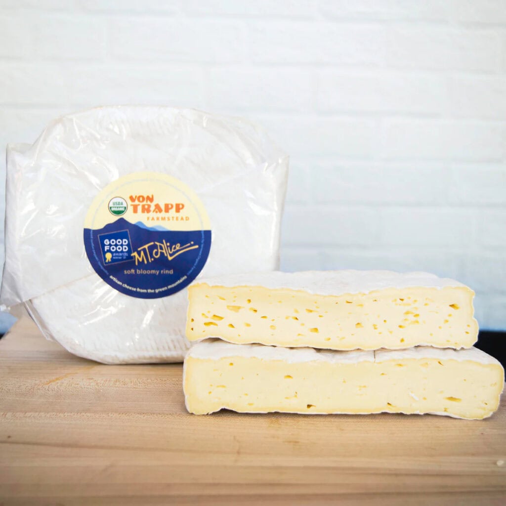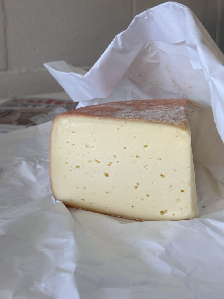The line between some bloomy rind cheeses and butter is often a thin one, especially when the bloomy rind in question presses the issue in its own name. Made from the milk of a local Guernsey herd, which is known to have high levels of fat and Beta-carotene, Butterbloom is a sunny, custardy, “butter bomb,” with notes of buttermilk, creamed corn, buttercream frosting, and an undercurrent of heady tropical fruit and earthy mushrooms. This ample 1-pound wheel has a generous paste-to-rind ratio; it’s a va-va-voom oozy stunner that won First in its category at the 2025 ACS. PV