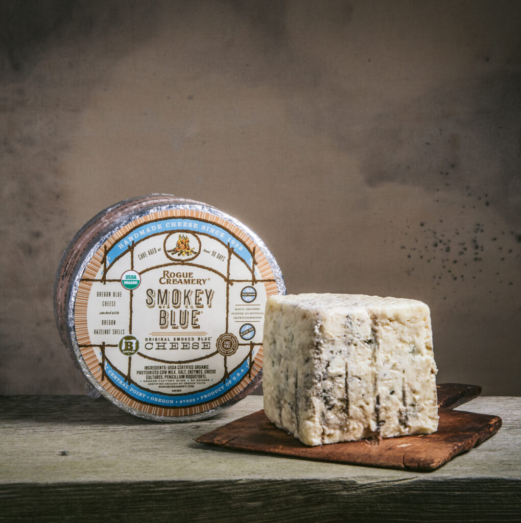 Inspired by Oregon’s wildfire-prevention icon Smokey Bear, this toasty blue is an homage to its namesake. The base starts with certified organic pasteurized cow’s milk inoculated with Penicillium roqueforti, then the wheel is cold-smoked over hazelnut shells, imparting a deep nuttiness with distinct notes of candied bacon and sweet spice. It’s cave-aged for 90 days before it’s ready to enjoy, which enhances its depth of flavor and mellows out some of the blue funk. Smokey Blue won a 2025 GFA, joining the ranks of Rogue Creamery’s many other award-winning originals. MT