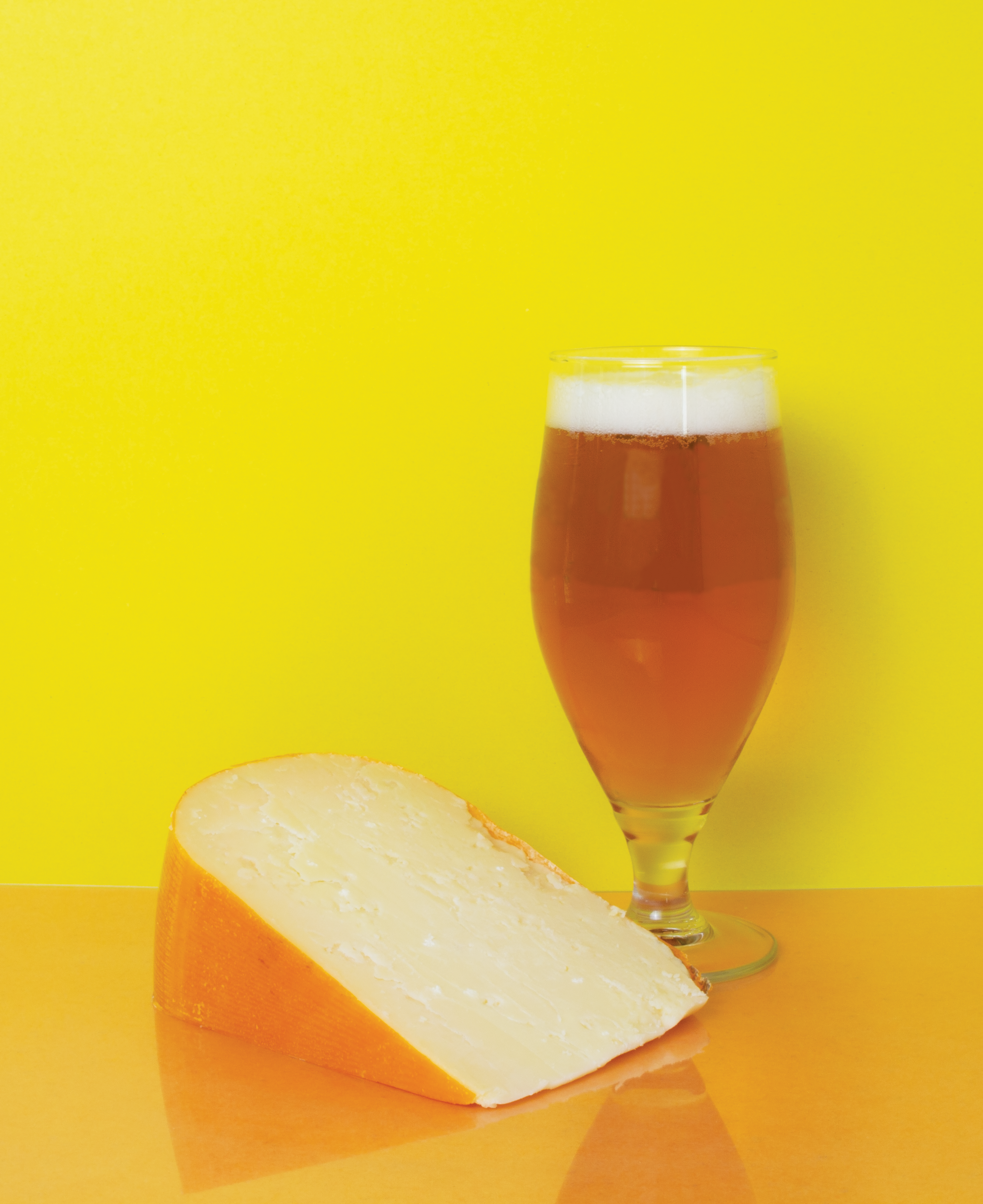 The only Belgian cheese with protected status, this little cow’s milk square is small in size but mighty in flavor. Similar to Limburger, its beer-washed rind gives way to a straw-colored interior that’s buttery and becomes increasingly runnier with age. The rind exudes a pungent aroma, but it’s a bit of a red herring for the semi-firm paste, which is relatively mild with lightly sweet and somewhat fruity aromas. Traditionally, Herve du Vieux Moulin is enjoyed on rye bread with a cup of coffee on the side. Up the ante by pairing with a Belgian beer, pickled veggies, and crusty bread. MT