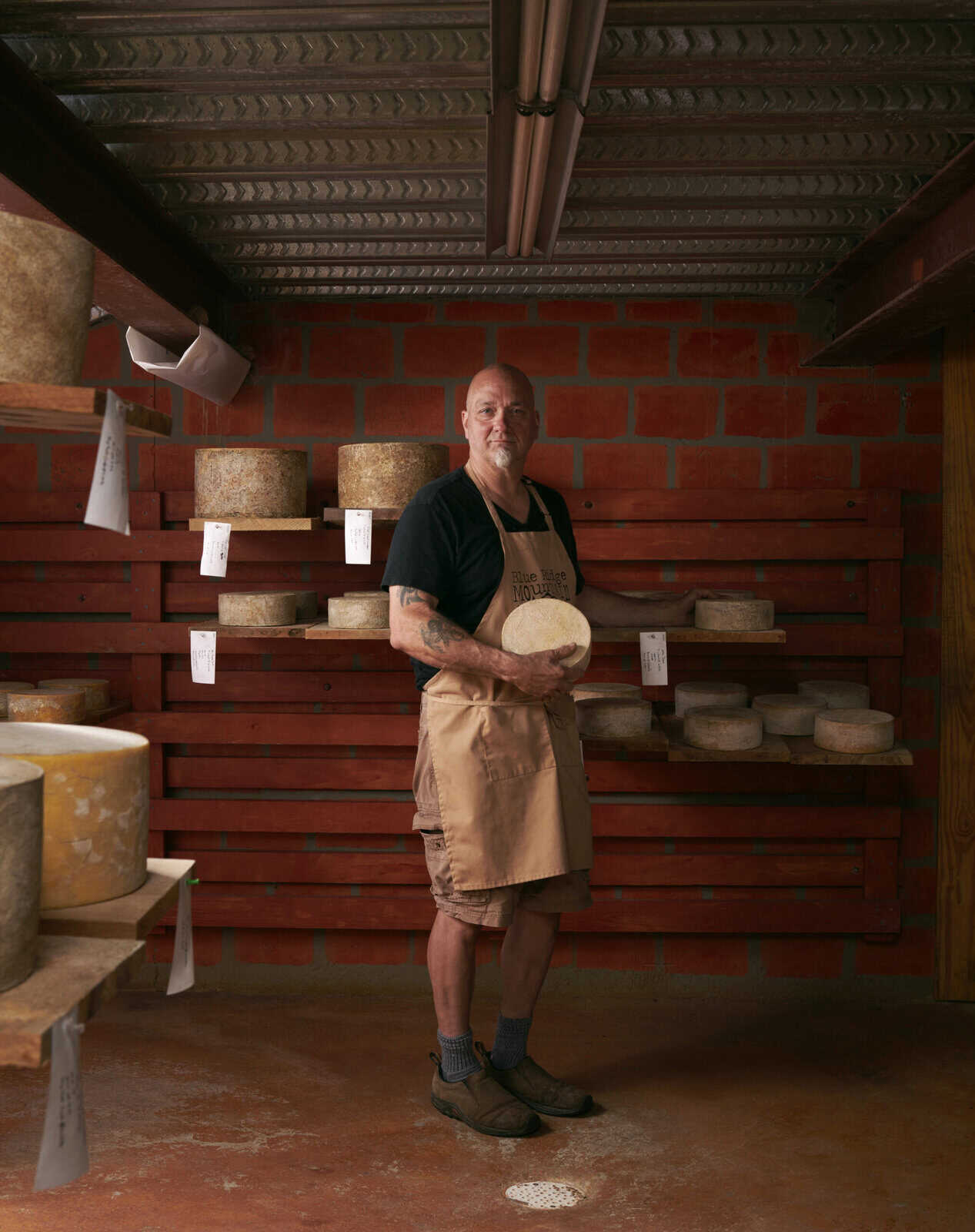 The winding roads of Appalachia’s Blue Ridge Mountains are characterized by jutting pine trees, sprouting wildflowers, and a hazy blue blanket of mist. The serenity and mystique surrounding these mountains have long drawn artisans, makers, and storytellers to take root in the foothills. That same allure brought cheesemaker and glassblower Victor Chiarizia to Fairview, North Carolina, in 2005. A self-starter by nature, Chiarizia fell in love with the traditional methods of crafting cave-aged cheeses. In 2010, he took a backhoe to the side of the mountain on his property and carved his own cheese cave, launching Blue Ridge Mountain Creamery. Little did Chiarizia know, this cave—a testament to his creativity and grit—would soon withstand one of the most devastating natural disasters to ever hit North Carolina.