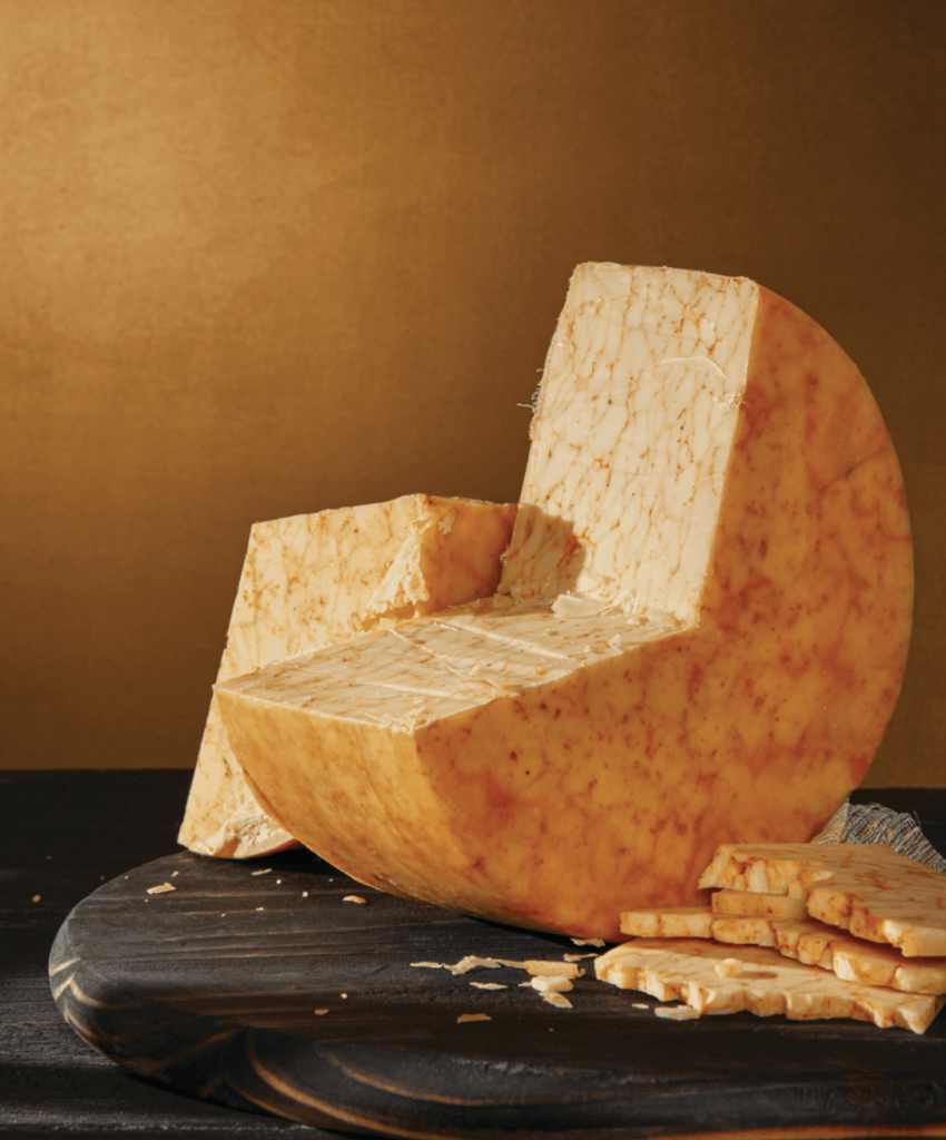 CG: At this point, we don’t use anything that’s similar to a rub—other people are doing that, so we want to steer clear there. We look at putting ingredients into cheese, partially for aesthetic beauty. When you look at the Doe, you see those beautiful lines of vanilla running around the curds, and with the Carawaybou, you get the nice open texture of the Colby, but you also get the caraway in there. I think that’s an old-school way to impart those spices or herbs or whatever you’re going to put in there. We doubled down with the Rattlesnake by adding habanero and then tequila. We added it because one, I like tequila, but we also wanted to add a third dimension. You have a great base layer cheese, then you add habanero, and then the tequila tricks you because you get that sweetness from the tequila and the cheddar cheese note, and then that knife blade of heat comes in.