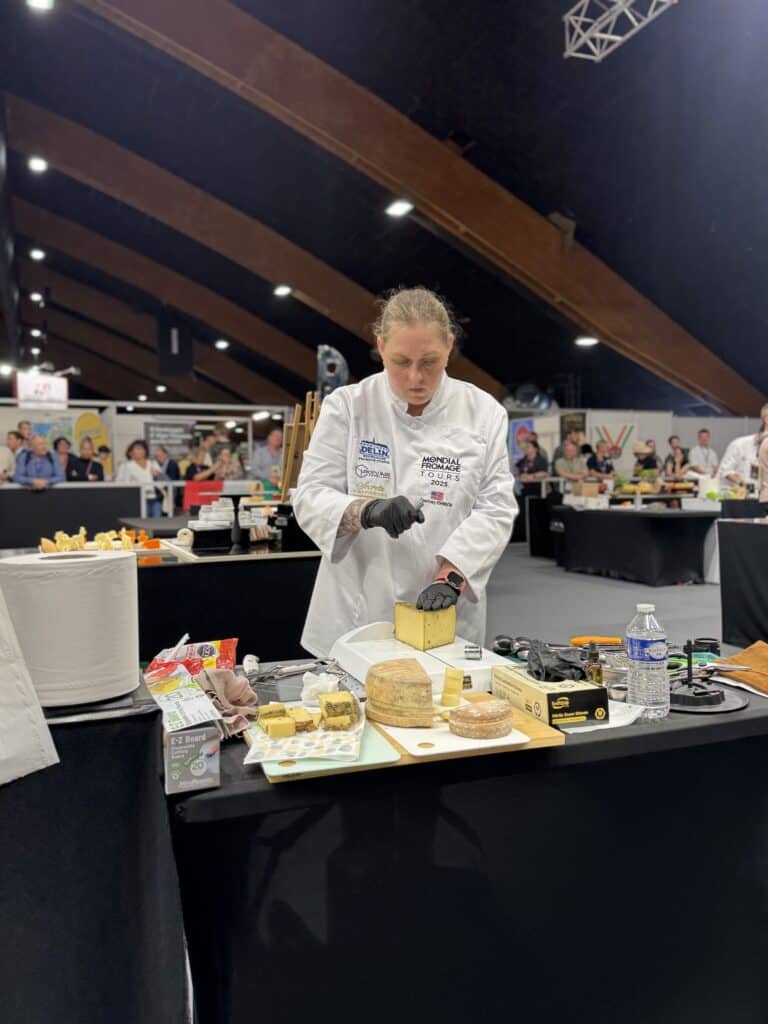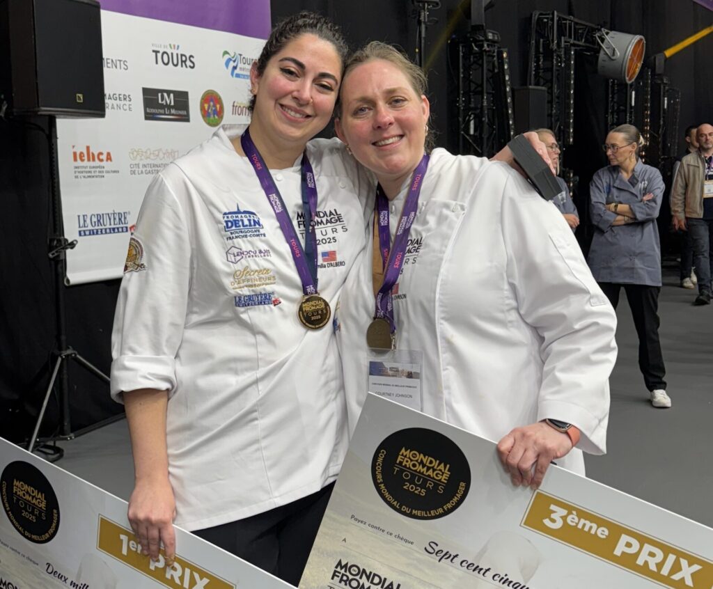 D’Albero and Johnson’s wins are history-making—it’s the only time Team USA has won gold and had two American women cheesemongers on the awards podium. It’s the first time an all-women team representing the United States competed as well. The last time Team USA placed at Mondial was in 2023, when Sam Rollins of Cowbell Cheese Shop in Portland, Oregon, won second place. French cheesemongers Vincent Philippe and Virginie Dubois-Dhorne were respectively crowned world champions at the 2023 and 2021 editions of Mondial.