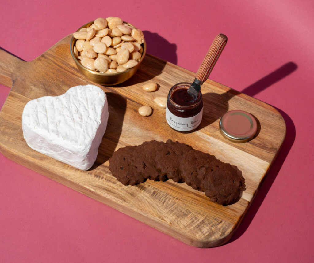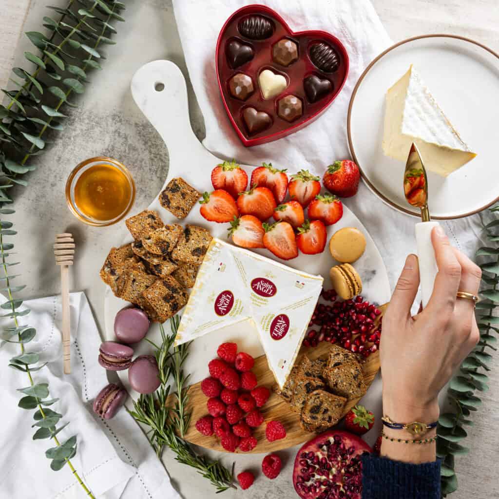 This bloomy rind wheel is shaped like a heart, making it a stunning centerpiece on any Valentine’s Day cheese board. Pair with dark chocolate, raspberry preserves, and sparkling rosé, the maker says. If you want all the fixings pictured, order Cowgirl Creamery’s Goldbelly package here.