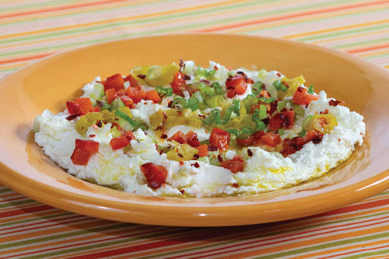 The spicy Greek Feta dip, htipiti, usually comes with the ingredients already mixed together, but this “deconstructed” version, originally served at Apiri Greek Eatery in Heraklion, Crete, is just as delicious. Serve with crusty bread or pita, cucumber spears, and kalamata olives.