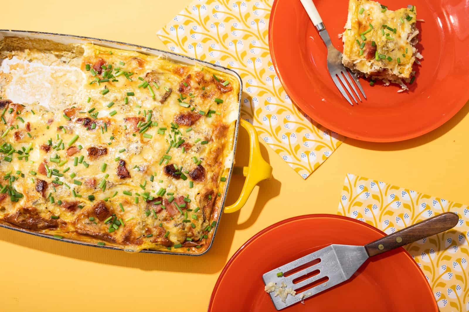Shredded Potato, Pancetta, and Stinky Cheese Breakfast Casserole