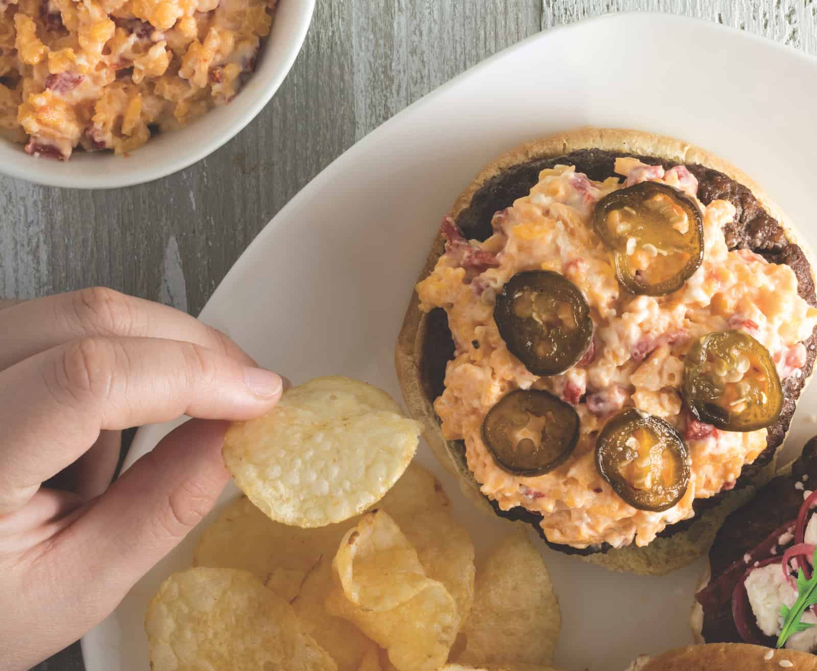 This classic spread gets the burger treatment, and candied jalapeños add an unexpected burst of spicy-sweet flavor.