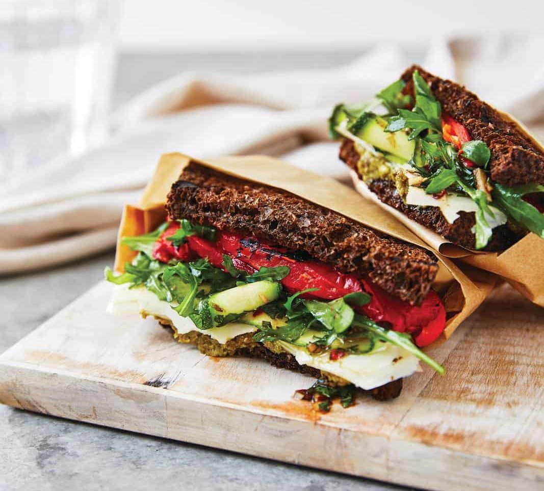 A simple sammie for summer, this meal comes together in a snap once the zucchini has been prepared. Add cured meat like salami or prosciutto if desired.