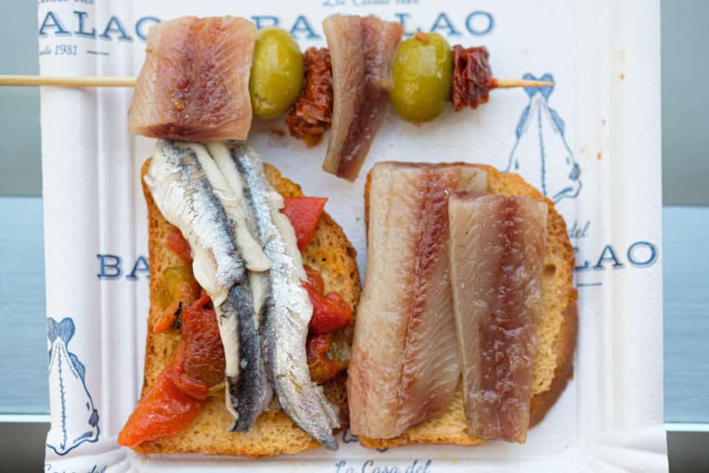 Spanish conservas are not your supermarket tuna fish. Instead, they include a wide variety of fish, from yes – tuna – to anchovies, squid, octopus, sardines, razor clams, and many others. But the differences don’t end there. While some fish are packed in salted water, many others are packed in high-quality Spanish olive oil, maybe or maybe not with tomato and onion, and depending on the fish, sometimes spices and vinegar – a combination known as escabeche. These conservas can be powerful or they can be mild, but no matter what, they capture the sea in all its glory.