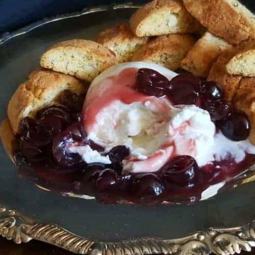 We all know that Burrata is brilliant served alongside ripe tomatoes, fresh basil, and grilled country bread. But, have you ever thought how special this luxurious cheese can be as a dessert? Amarena cherries grow wild in Italy and are tart and a bit sweet. Pair them with Amaretto liquor in a gently sweetened sauce, and serve warm on top of Burrata.