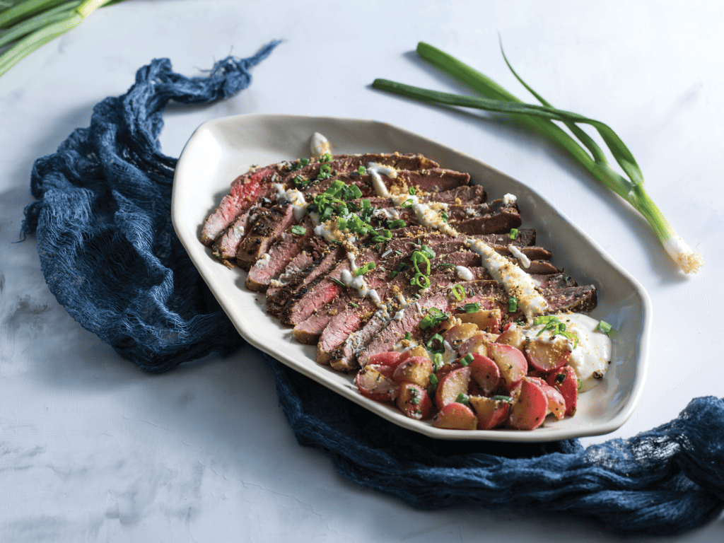 Flank Steak with Burrata and Radishes