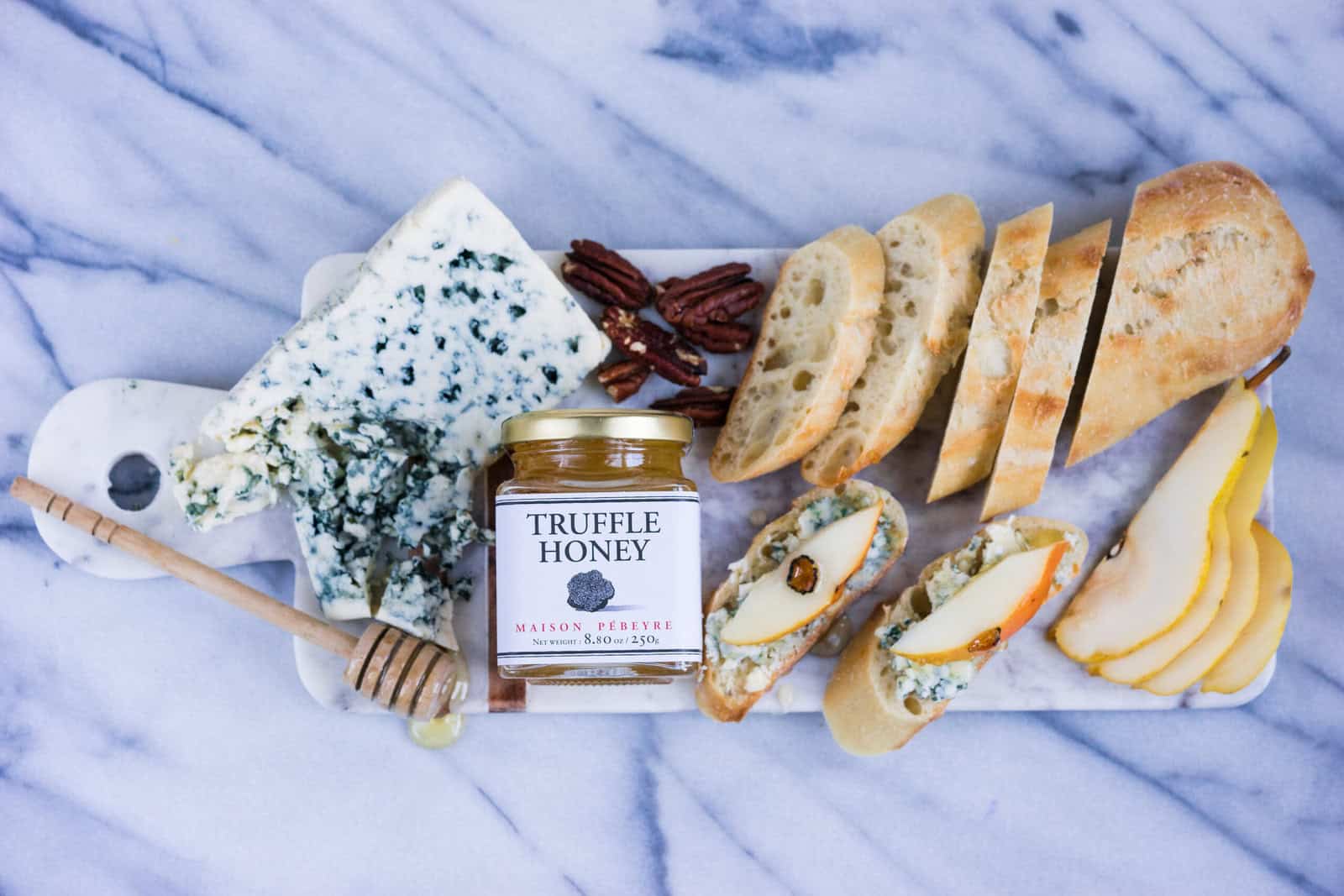 Our Pebeyre Truffle Honey is an exceptional addition to any cheese board. Highlighted as one of Oprah’s Favorite Things in 2015, this truffle-infused honey continues to delight with its luxurious aroma and intense, earthy flavor. The rich truffle essence is best enjoyed with mild and creamy cheeses, such as a triple-cream brie or even a soft blue cheese, where the honey’s depth can truly stand out. Just a drizzle of this gourmet honey transforms the cheese into an indulgent, complex experience, making it a must-have for cheese connoisseurs and truffle lovers alike.