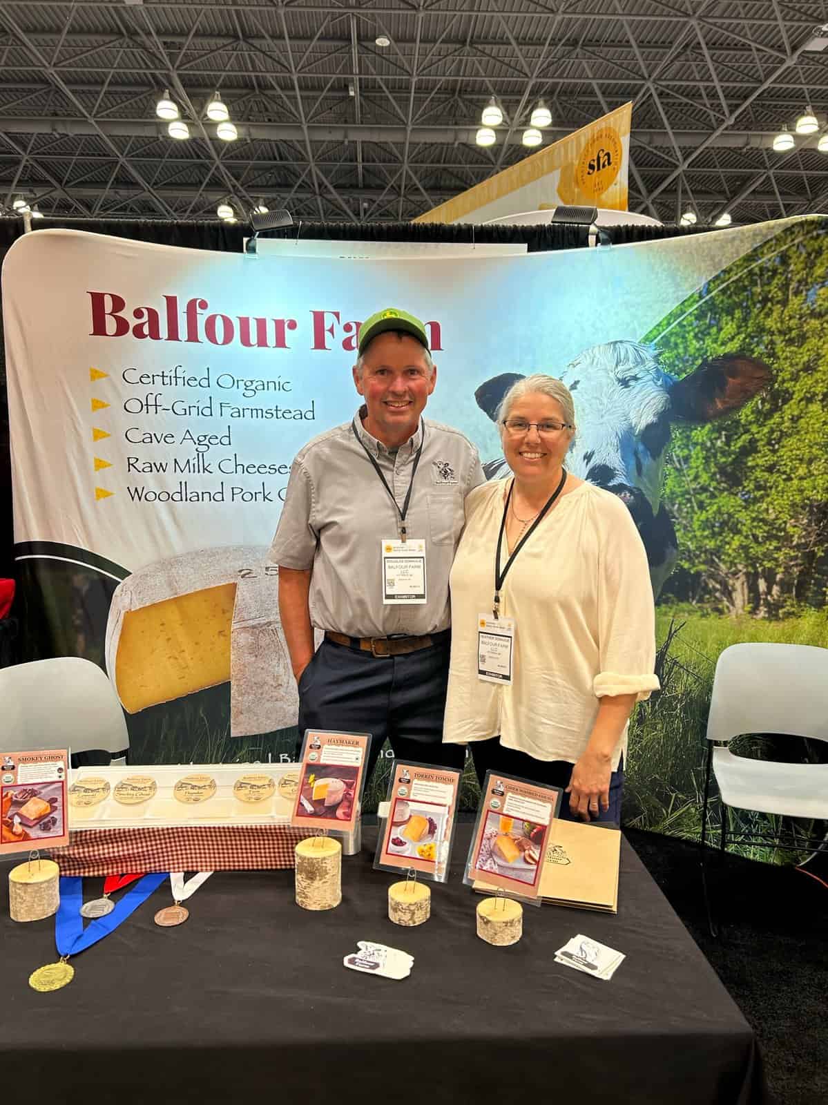 “Itt was a special surprise to find Maine cheesemakers Doug and Heather Donohue of Balfour Farm at their own booth! I’ve bought Balfour’s organic dairy products at my local farmers’ market since I moved to Maine 10 years ago, and when they started to make raw milk hard cheeses, I was an instant fan. Their Smokey Ghost—a version of their Haymaker cheddar with ghost pepper salt and smoked chipotle peppers—won a 2022 ACS Award, and I hope Heather and Doug’s first FFS as exhibitors helped more people discover their cheeses!” – Editor Susan Sherrill Axelrod