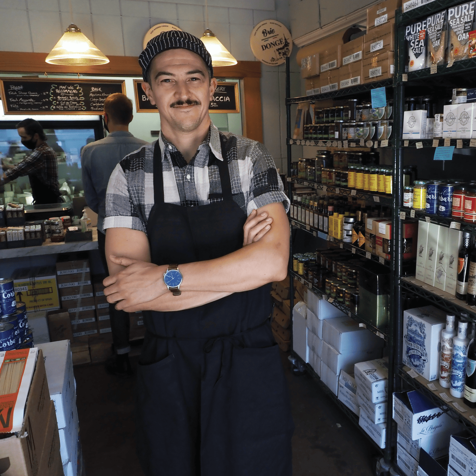 It’s not uncommon for people in cheese to have a restaurant background, but Sam Rollins was born into one as the son of legendary Oregon restaurateurs Vernon and Charlene Rollins, who operated New Sammy’s Cowboy Bistro for 30 years. “They grew most of the vegetables on the property; it was a labor of love for them and always a model for me,” he says. His parents hoped Rollins would take over the restaurant, but his interest in food took him in a different direction. He got a job at Provisions Market Hall in Eugene as a barista, and six months later, was asked to step in as a manager. “I was given this amazing opportunity of managing a specialty food store’s cheese and charcuterie department while having no idea what I was doing,” he says. “They were really generous about letting me make my own mistakes and learn as I went.” One of his cheese suppliers was Cow Bell Fine Cheese, an importer and distributor in Portland. In 2018, when he and his partner decided to move there, Rollins reached out to the owner for a job. He finally landed one during the pandemic; Cow Bell had laid off all its employees but brought Rollins and another monger in to open a small retail shop. “People in Portland were so eager to support local businesses,” Rollins says.