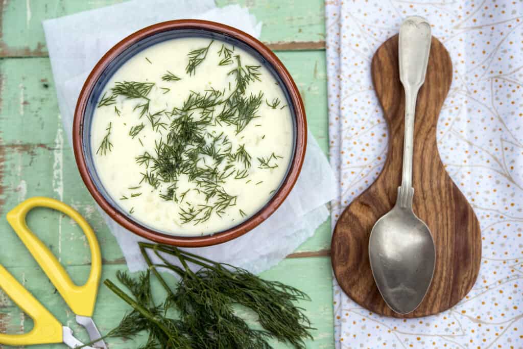 Matsoni is an Armenian fermented yogurt typically made from a combination of cow’s, sheep’s, or goat’s milk. But Chef Ketevan Mindorashvili, who runs a restaurant at the Pheasant’s Tears Winery in Sighnaghi, Georgia, makes hers with buffalo’s milk. Her Matsvnis soup recipe is made with Matsoni and foraged wild herbs, dolloped over minced lamb-stuffed dolmas.