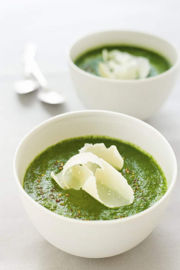 This soup calls my name after a picturesque trip to the farmers market on a Sunday morning. Pick up fresh peas—the best ones are shiny, firm, and bright green. Take your time shelling them (and no judgment on snacking on them as you shell).