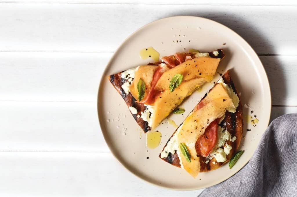 Don’t let the straightforward name fool you. This is no ordinary marriage of prosciutto and melon. No! This is a crowd-shocking, polyamorous scandal between mint leaves, goat cheese, prosciutto, and cantaloupe. And, I call on my good friend extra virgin olive oil as my sole witness. I rest my case, your honor.