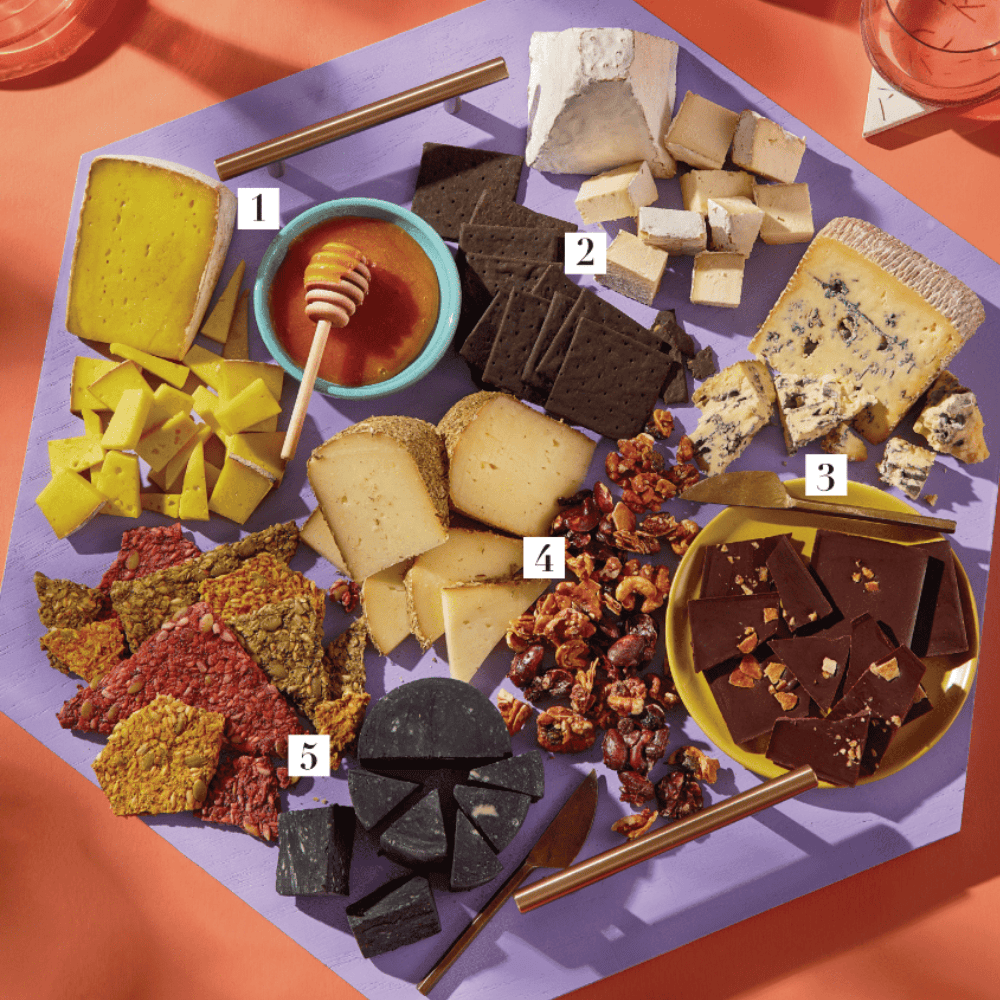 If you have guests with dietary restrictions, your cheese board is an excellent opportunity to satisfy their needs without compromising the entire meal. Toss on gluten-free crackers, soy-free chocolate, or vegan crisps and pair it with cheeses like Briar Summit, Glacier Blue, or charcoal cheddar.