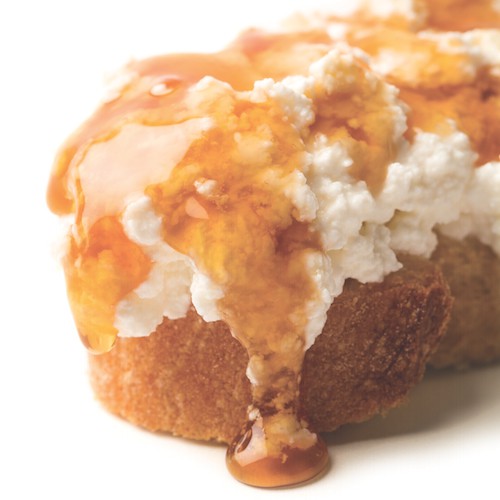 To get things started, check out the shots I took during our shoot for our special-edition Cheese+ issue. This was a big action shot (as far as action shots go when you’re talking inanimate dollops and slices of cheese). To accompany Laurel Miller’s Pairing Cheese and Honey article, stylist Eugene Jho is dripping honey over a gorgeously globby ricotta-topped baguette slice as photographer Jeremy Merriam snaps frames (top photo). The following photo is another shot of Jeremy shooting the honey-covered ricotta. And below, here’s one of the images that the whole little setup delivered (we used a variation of this photo in the print magazine, on page 24. (Oh, yes, and then we gobbled this ricotta-honey goodness right up. Yum.)