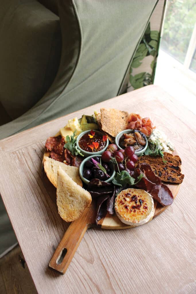 Certain dishes have become touchstones. The burrata, paired with basil paint, charred strawberry-shallot jam, and house-made focaccia, is a perennial favorite, reimagined through the seasons but always circling back to its original form. The Farm Board, too, has anchored the menu since opening. “It’s kind of an expression capsule of what The Hope Farm does,” Ackerman says.