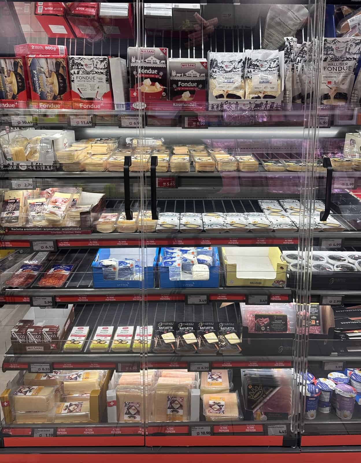 Which brings me to my biggest takeaway: Switzerland loves cheese. From the moment I arrived at the airport to a video of cows grazing on an alpine ridge—narrated by Heidi Klum, no less—I knew I was in for something special. Cheese was everywhere, from the literal fondue train rolling through Bern to the prolific raclette and fondue endcap at Aldi. Switzerland takes cheese seriously in a way that is both charming and deeply enviable.