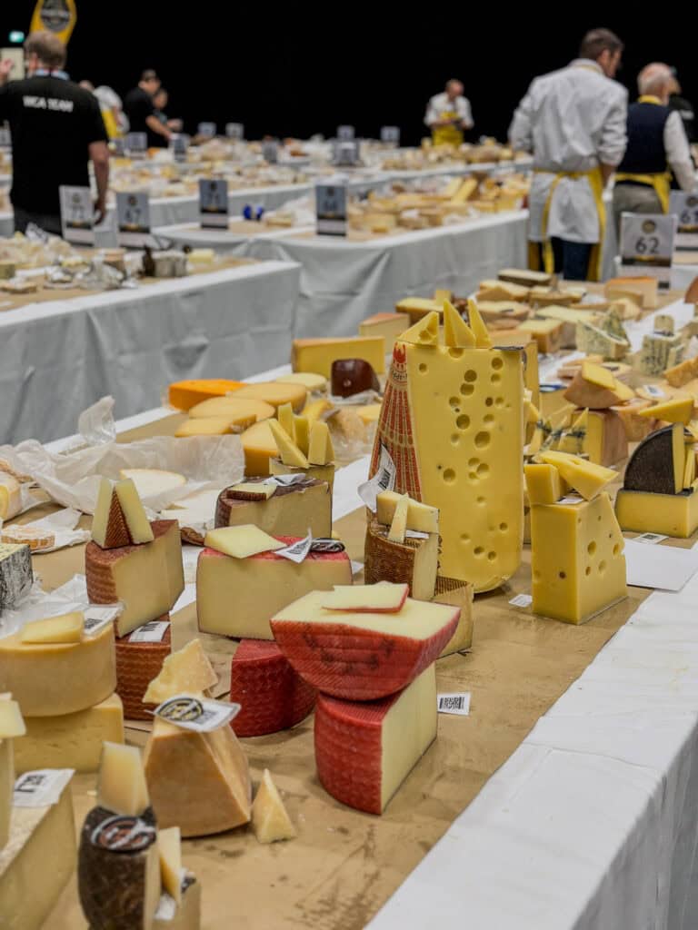 That smell was the aroma of 5,244 cheeses from 46 countries, all gathered in Bern, Switzerland, for what’s widely recognized as the foremost international cheese competition. With 265 judges from around the world, the hall hummed with expertise and shared passion. Tables stretched as far as the eye can see, each stacked with dozens of cheeses representing every style imaginable. Seeing the entire global cheese ecosystem compressed into a single room made me realize just how small my corner of the cheese world really is.