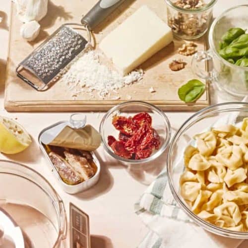 Cheese Tortellini Salad with Anchovy Pesto and Sun-Dried Tomatoes