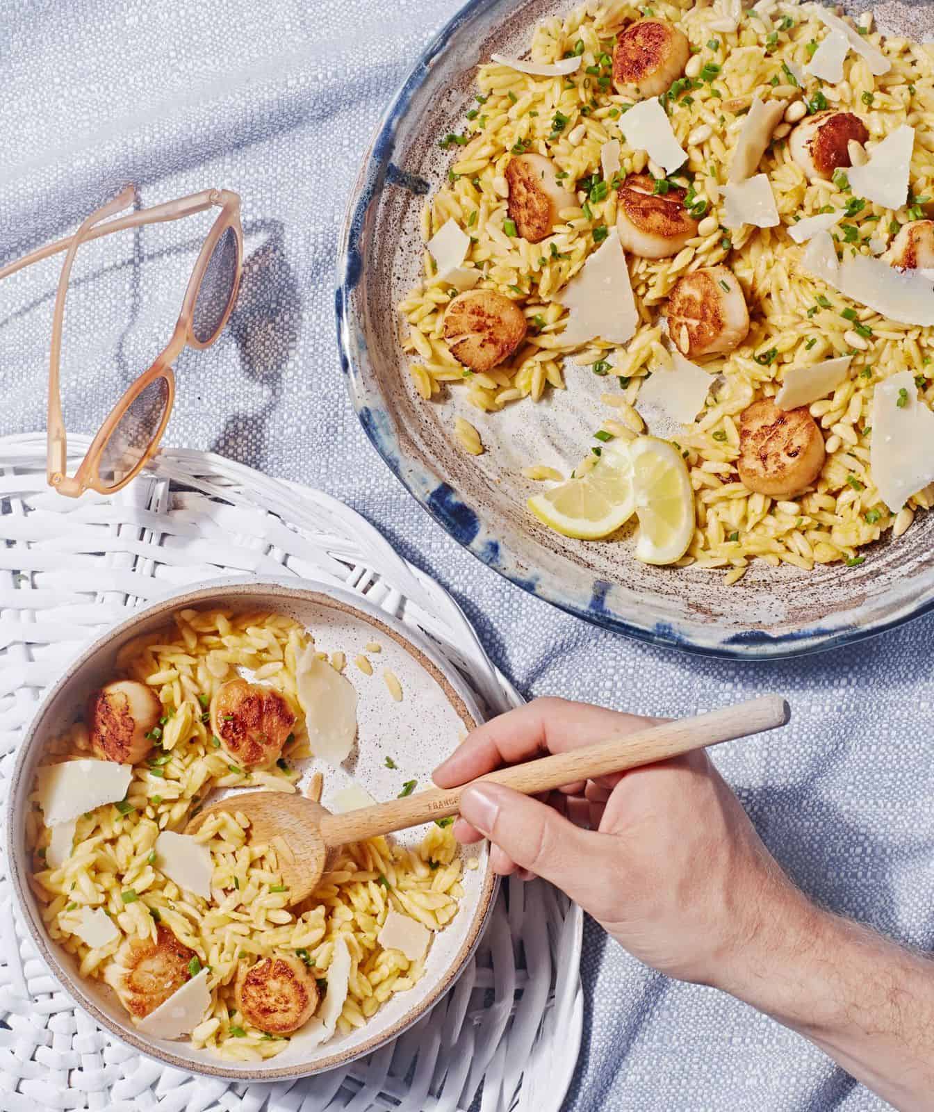 Pan-Seared Sea Scallops with Herbed Orzo and Parmesan