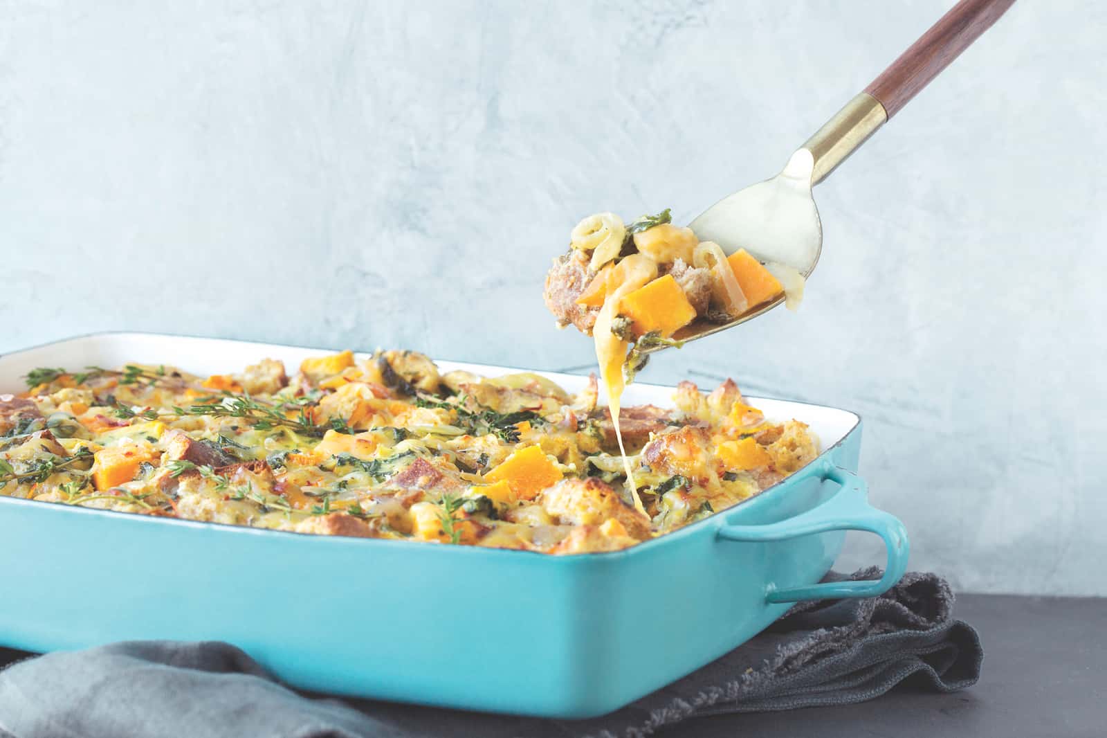 Strata is traditionally served for breakfast or brunch, but it can make for a wonderful meal any time of day—just serve with a green salad for a hearty, filling feast.