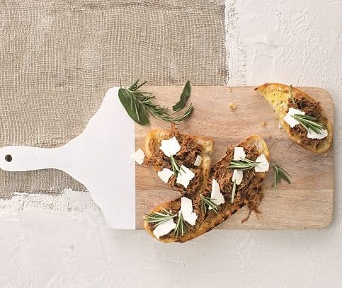 Serve this ragu over pasta, polenta, or—as here—with thick slices of toasted bread. The ragu freezes well, so double the recipe if you’d like.
