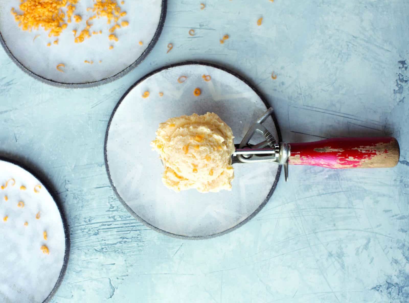 This unique ice cream goes gangbusters with apple pie, but it’s also delicious drizzled with rich caramel sauce.