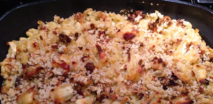 The sweetness of roasted cauliflower works well with the pungency of goat cheese.