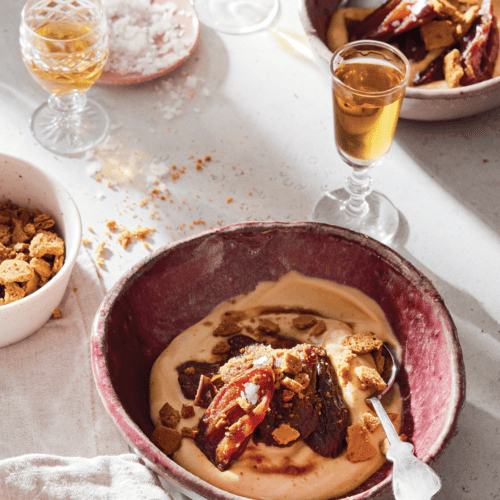 Dates are so deeply sweet and candy-like, they’re practically dessert all on their own. My husband, however, would never buy into this truth. So, I duped him by bringing caramel cream and cookies to the party—the latter almost always does the trick. This is a luxurious way to end a meal on a cold winter night. But don’t be too fooled: The soft, chewy dates are the star here, though piling them onto a little creamy decadence absolutely doesn’t hurt.