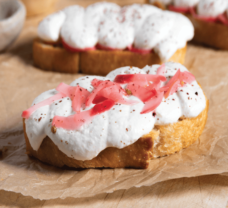 Whipped Preserved Lemon Chèvre Toast with Pickled Radish and Sumac