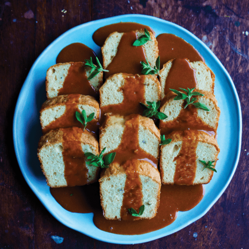 This dessert highlights the floral and tangy combination made from pairing lavender with sweet and salty feta caramel. Be sure to use goat’s milk feta as it creates the smoothest and creamiest result. The caramel can also be used to top ice cream or for dipping berries. Food- grade dried lavender can be found at specialty shops and natural food stores.