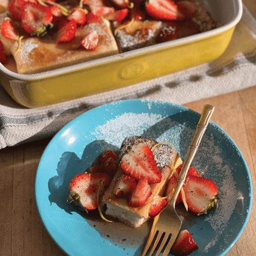 Feta Blintzes with Spring Strawberries, Lemon, and Honey