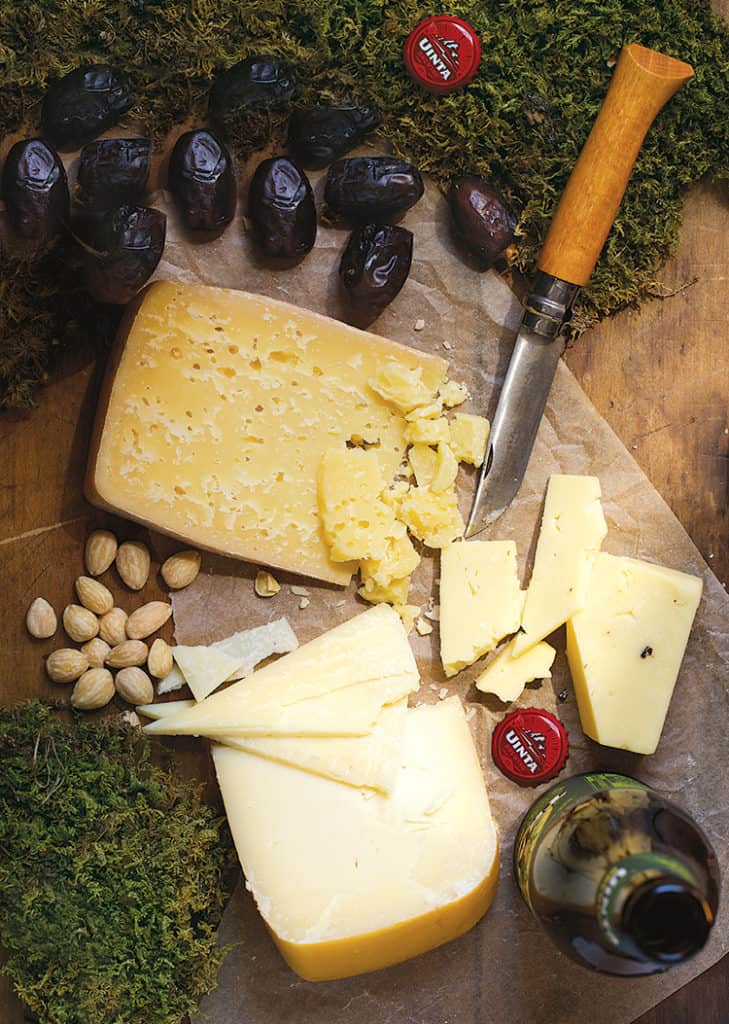 Cheese is the ideal treat for a summer hike: Just throw it in the cooler, no camping stove or cooking equipment required. These hard cheeses travel well and reward your efforts with bold flavors. Bring along a few snacks to match—dried fruits, nuts, and, of course, beer. Find a shady spot, and you’re set to enjoy a gourmet meal al fresco.