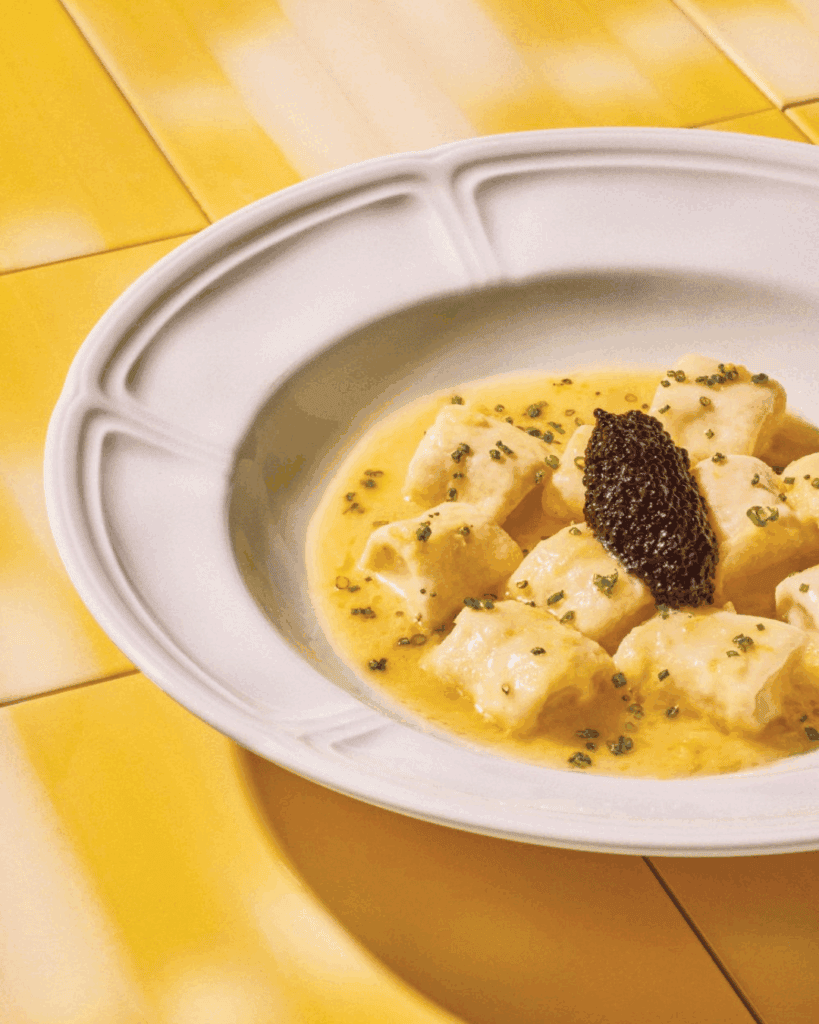 - Divide gnocchi between two shallow bowls, ensuring plenty of sauce coats each serving. Sprinkle with chives, then carefully spoon a large quenelle of caviar over top. Serve immediately.