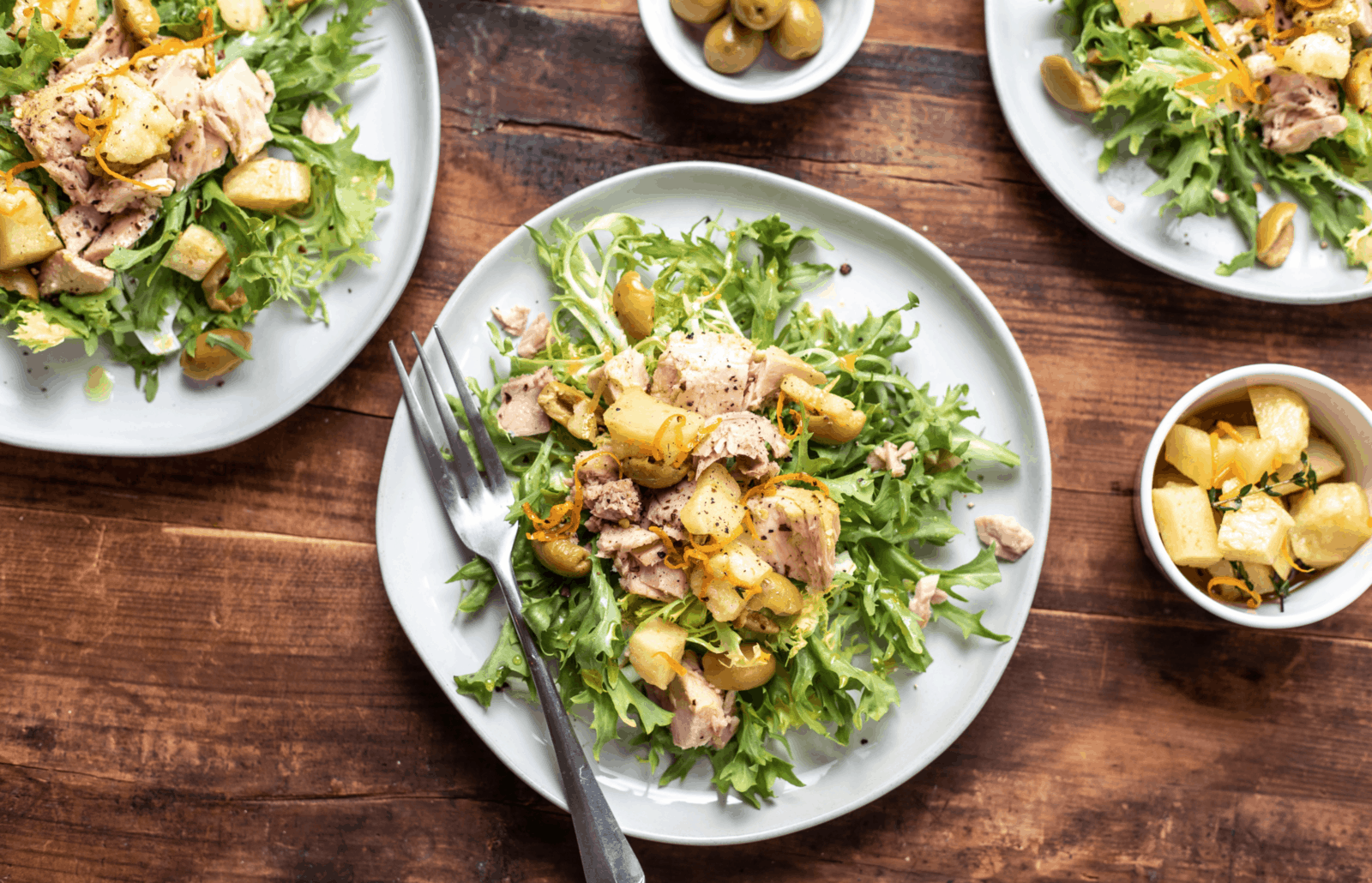 Tuna Frisée Salad with Citrus-Marinated Manchego and Olives