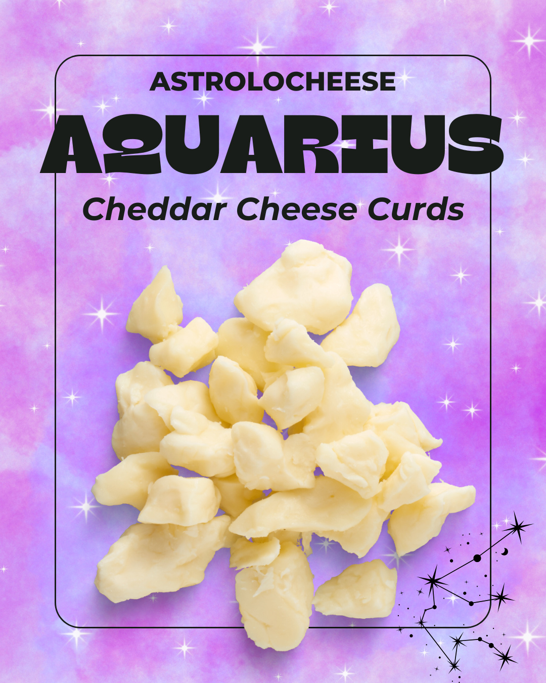 The ultimate guilty pleasure pairing for Aquarians is cheddar cheese curds, butterscotch candies, and sarsaparilla, says @astrolocheese. That`s because Aquarius revels in big-picture thinking—the more innovative, the better! ♒️⁠